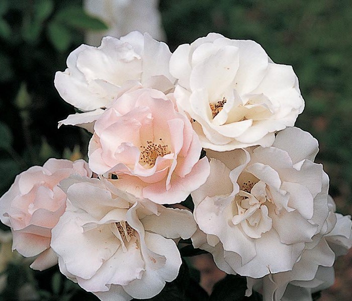 ดอก: เป็นช่อแน่น ดอกบานขนาด 5-8 ซม.สีชมพูอ่อนจางเป็นสีขาว ซ้อนกัน 15-20 กลีบ เป็นคลื่นสวยงาม กลิ่นหอมอ่อน มีต้นกลายพันธุ์ดอกสีชมพูเข้ม ออกดอกดก