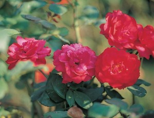 ดอก: เป็นช่อใหญ่ 3-7 ดอก ก้านดอกค่อนข้างยาว ดอกบาน 6-7 ซม.สีแดง ซ้อนกัน 40-50 กลีบ กลิ่นหอมอ่อน ออกดอกดกตลอดปี