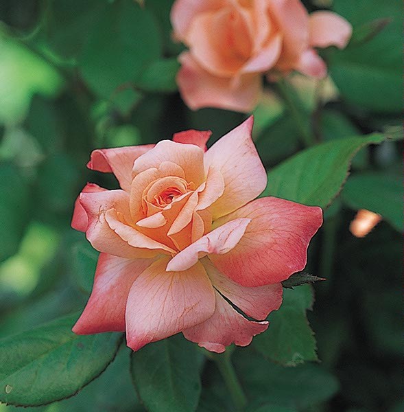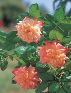 ดอก: ดอกบาน 5-6 ซม. สีชมพูอมส้มถึงเหลือง กลีบดอกเล็กๆ ม้วนงอและซ้อนกันมากแบบกุหลาบอังกฤษ กลีบดอกเล็กๆ ม้วนงอ