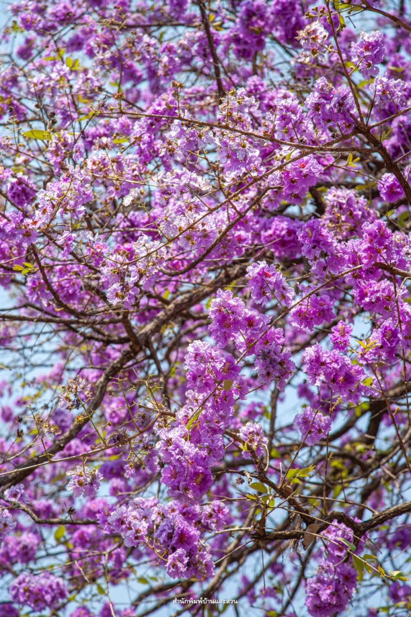 ดอก: ออกเป็นช่อแยกแขนงตามกิ่งดูเป็นกลุ่มก้อน เส้นผ่านศูนย์กลางดอก 3 – 4 เซนติเมตร กลีบเลี้ยง 5 – 8 กลีบ กลีบดอก 6 กลีบ ทรงกลม โคนคอดเป็นก้านสั้นๆ มีหลายสี เช่น สีม่วง ม่วงอมแดง ขาว หรืออาจมีทั้งสีขาวและม่วง กลีบดอกบาง ยับย่น ขอบกลีบย้วย ออกดอกเดือนธันวาคม – มีนาคม
