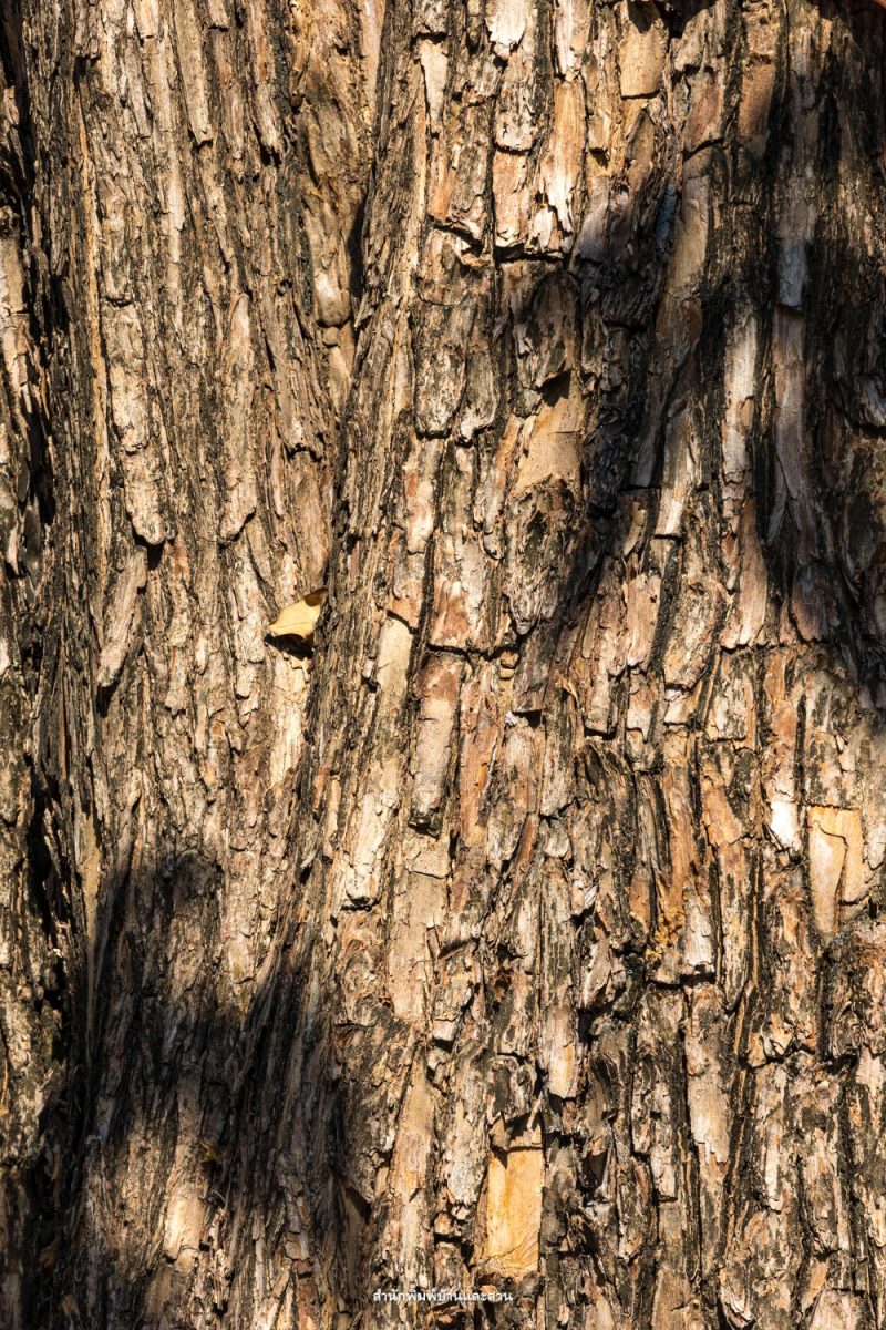 ลำต้น: เปลือกต้นสีเทาเข้มเกือบดำ ผิวขรุขระ มีรอยแตกเป็นทางยาว กิ่งโน้มลงต่ำ