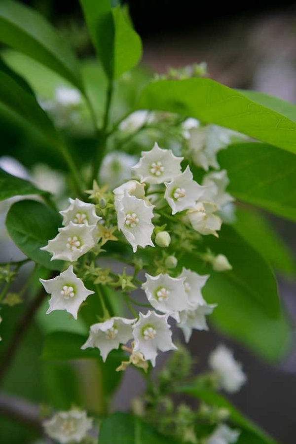 ดอก: ออกเป็นช่อกระจุกตามซอกใบและปลายกิ่ง ดอกย่อยจำนวนมากคล้ายรูประฆังคว่ำ กลีบเลี้ยงสีเขียวอ่อน กลีบดอกสีขาว โคนกลีบสีเขียวอ่อนเชื่อมติดกัน เส้นผ่านศูนย์กลางดอก 1-2 ซม. มีกลิ่นหอมคล้ายข้าวใหม่ผสมใบเตย บาน 1-2 วันแล้วร่วง ออกดอกในช่วงเดือน ม.ค.-มิ.ย. ดอกดกช่วงเดือน เม.ย.