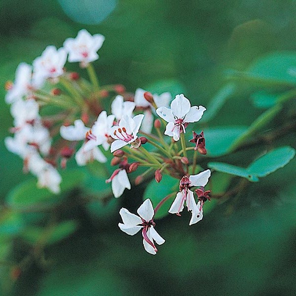 ดอก: ออกเป็นช่อเชิงหลั่น ก้านดอกสีแดง กลีบเลี้ยงสีแดง 5 กลีบ กลีบดอกสีขาวรูปไข่แกมรี 5 กลีบ เกสรเพศผู้ที่ปกติ 3 อันมีอับเรณูสีแดงสด ก้านอับเรณูสีชมพู ขนาดดอก 2.5-3 เซนติเมตร ออกดอกเดือนมีนาคม-สิงหาคม