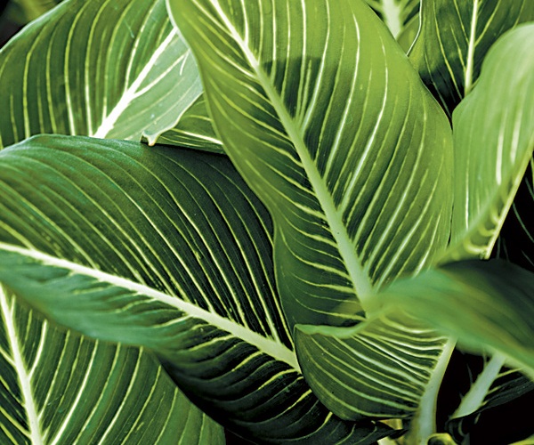 ใบ: เดี่ยว เรียงเวียนสลับ ใบรูปใบหอกแกมขอบขนาน ปลายแหลม สีเขียวและด่างสีต่างกันไปตามพันธุ์ เช่น ด่างสีขาวครีมที่ขอบใบเรียก กวนอิมเงิน (‘Silver’) ด่างสีเขียวอมเหลืองที่ขอบใบ เรียก กวนอิมทอง (‘Gold’) และกวนอิมประกายแสด