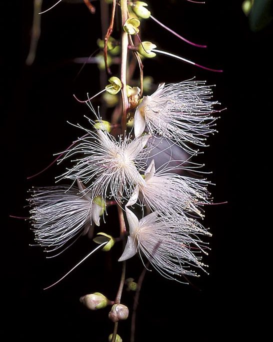 ดอก: ดอกออกเป็นช่อกระจะห้อยจากปลายกิ่ง ยาว 30 – 60 เซนติเมตร กลีบดอกสีขาวถึงสีชมพู 4 กลีบ เกสรเพศผู้สีขาวจำนวนมาก ร่วงง่าย มีกลิ่นหอมอ่อนๆ ดอกทยอยบาน ออกดอกเกือบตลอดปี