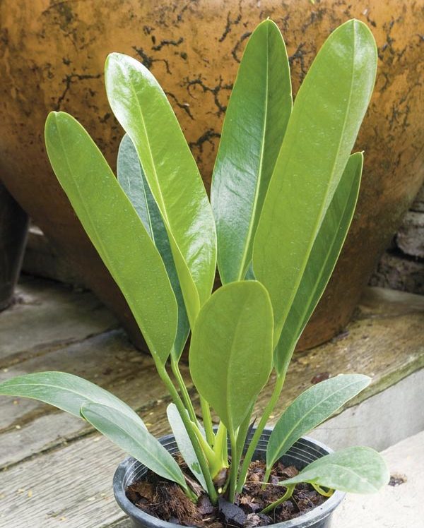 ใบ: รูปใบหอกแกมรูปรี กว้าง 5 – 7 เซนติเมตร ยาว 15 – 30 เซนติเมตร ปลายใบมน มีติ่งแหลม โคนใบสอบ ขอบใบเรียบ แผ่นใบหนาคล้ายแผ่นหนัง สีเขียวคล้ำ เห็นเส้นกลางใบเด่นชัด ก้านใบกลม ยาวประมาณ 5 เซนติเมตร ด้านในมีร่องเล็ก ๆ ตลอดความยาวใบ