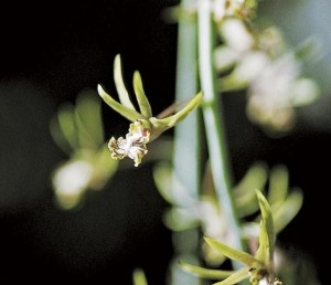ใบ: เดี่ยว เรียงสลับรูปแถบแคบ กว้าง 1.5 – 2 เซนติเมตร ยาว 15 – 30 เซนติเมตร