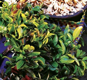 ใบ: เดี่ยว รูปรีแกมรูปไข่กลับหรือรูปขอบขนาน ออกตรงข้าม ปลายใบแหลม โคนใบสอบ ยอดใบอ่อนมีสีแดงเรื่อ แผ่นใบเป็นมัน