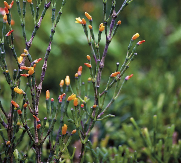ดอก: ออกที่ปลายยอด สีเหลืองสดถึงสีส้ม เส้นผ่านศูนย์กลางดอก 5 มิลลิเมตร