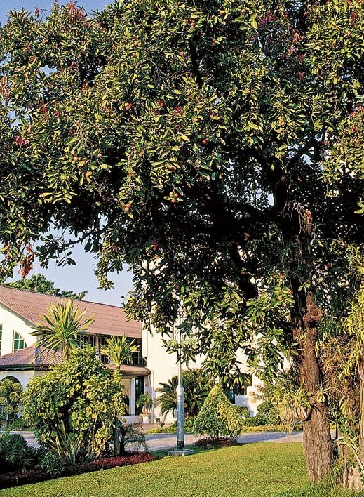ลำต้น: ทรงพุ่มโปร่ง เปลือกต้นสีน้ำตาลอมเทา
