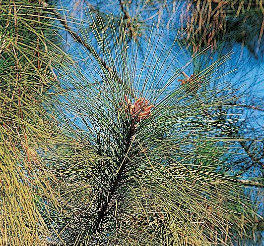 ใบ: รูปเข็ม ออกกลุ่มละ 3 ใบ ยาว 15-24 ซม. สีเขียวอมเทา ติดทนนานถึง 2 ปีไม่ร่วงหล่น โคนใบรูปไข่ขนาด 5-7 ซม. สีน้ำตาลเข้ม ไม่มีก้าน ภายในมีเมล็ดขนาดประมาณ 1 เซนติเมตร