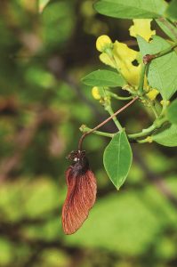 ผล: เป็นผลแห้ง สีน้ำตาลเข้ม มีปีกตามยาว 1 ปีก