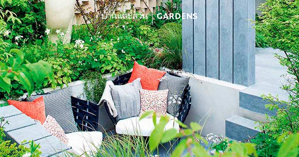 สวนยุโรปกับพรรณไม้ไทย ช่วยลดความแข็งให้ดูนุ่มนวลและรู้สึกสบาย
