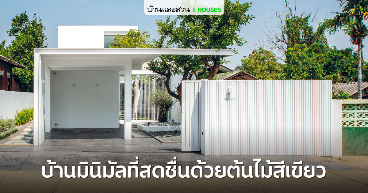 บ้านมินิมัลสีขาว แทรกด้วยคอร์ตต้นไม้สีเขียว