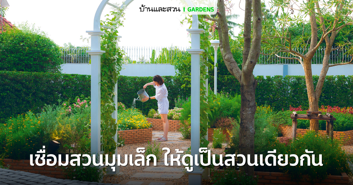 “คอนเซ็ปต์การออกแบบของสวนนี้ คือ สวนที่เชื่อมต่อส่วนต่าง ๆ ที่เป็นพื้นที่ว่างในบ้านเข้าไว้ด้วยกัน” บนเนื้อที่กว่า 3 ไร่ในบ้านหลังหนึ่งย่านพุทธมณฑล รอบบ้านล้อมด้วยรั้วทึบสีขาว ภายในมีสนามหญ้ากว้างและต้นไม้ใหญ่ดูร่มรื่น มุม สวนขนาดเล็ก สำหรับนั่งพักผ่อนในสวนกระจายอยู่หลายจุด บ้านหลังใหญ่รูปทรงร่วมสมัยตั้งเด่นอยู่กลางพื้นที่ ด้านข้างบ้านยังคงเป็นสนามหญ้ากว้าง แต่มีบรรยากาศที่เปลี่ยนไป หญ้าถูกตัดสั้นเป็นระเบียบ รายล้อมด้วยไม้ประดับหลากหลาย มุมหนึ่งวางม้านั่งและมีอ่างน้ำพุสไตล์สวนอังกฤษ เดินลัดเลาะตามทางเดินที่ปูด้วยแผ่นหินและคอบเบิลสโตนเข้ามาด้านในเห็นศาลาไม้หลังใหญ่อยู่ข้างสวนดอกไม้หลากสีสันที่แข่งกันออกดอกสะพรั่ง “บ้านหลังนี้อยู่มา 30 ปีแล้วค่ะ เดิมจัดสวนไว้บ้างแล้ว มีสนามหญ้า มีต้นไม้ใหญ่อยู่รอบ ๆ เราก็แค่ดูแลให้คงสภาพไว้ไม่ได้คิดจะทำอะไรเพิ่มเติม จนกระทั่งหลังน้ำท่วมใหญ่ ตั้งใจจะรีโนเวตบ้าน เลยคิดอยากปรับปรุงสวนไปพร้อมกันเลยค่ะ พี่เป็นแฟนพันธุ์แท้ของ บ้านและสวน นะคะ ซื้อทุกเล่ม รวมทั้งหนังสือรวมเล่มเฉพาะเซ็กชั่นทั้งหลาย ดูผลงานของหลายบริษัทหลายที่ งานเขาก็สวยแต่ไม่เข้ากับบ้านเรา จนไปเห็นผลงานของคุณอรรถ ชอบมากค่ะ ดูเข้ากับบ้านเรามาก โทร.ไปที่บ้านและสวน เขาก็น่ารักให้เบอร์ติดต่อคุณอรรถมา เริ่มคุยกันตั้งแต่โควิดรอบแรกเมื่อประมาณ 2 ปีก่อน คุณอรรถเองก็ยุ่ง ๆ ไม่ค่อยว่าง แต่ในที่สุดวันนี้สวนก็เสร็จสมบูรณ์ สวยตามแบบที่อยากได้ค่ะ” คุณโสมอุษา เนรกัณฐี เล่าถึงจุดเริ่มต้นของสวนแห่งนี้ให้ฟัง “ให้โจทย์คุณอรรถไปแค่อยากได้มุมนั่งเล่นในสวน […]