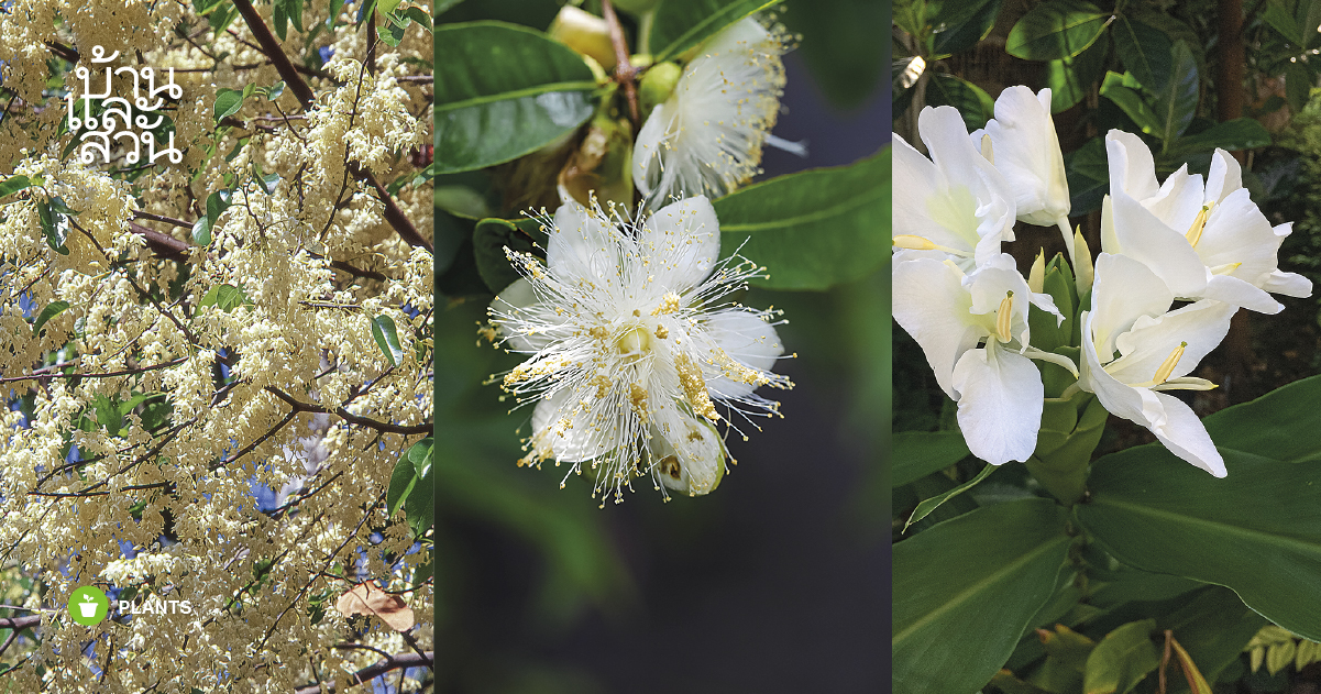 ดอกไม้สีขาว ช่วยเพิ่มในสวนมีความนุ่มละมุนจากสีของดอก และกลิ่นหอม ทั้งยังปลูกง่าย ทนต่อสภาพอากาศ