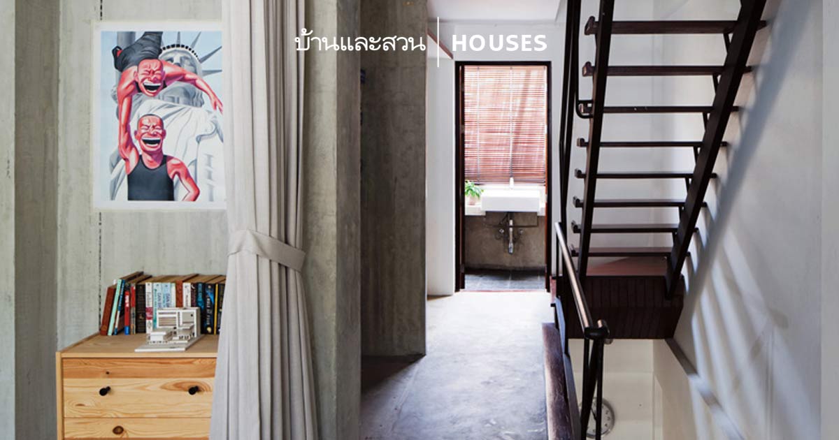 บ้านปูนเปลือย ที่ดูดิบสไตล์ลอฟต์ แต่ผสมด้วยหลังคาทรงจั่วแบบไทยที่เข้ากันได้ดีกับสภาพอากาศร้อนชื้น พร้อมฟังก์ชันภายในแบบจัดเต็ม