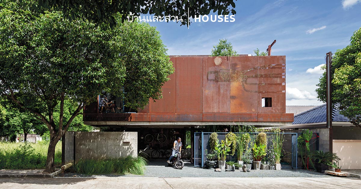 บ้านปูนขนาดเล็ก ที่มีฟาซาดเป็นเหล็กกับพื้นที่เปิดโปร่งภายใน