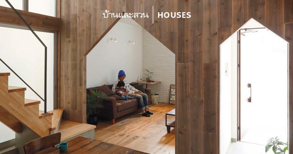 DESIGNER DIRECTORYออกแบบ: Studio Path บ้านขนาดสองชั้นสำหรับสมาชิกครอบครัว 3 คน พ่อ แม่ ลูกที่ตั้งอยู่ในพื้นที่สมุทรปราการหลังนี้ ตั้งอยู่ในพื้นที่ที่รายล้อมไปด้วยบ้าน และอาคารอื่น ๆ โดยรอบ จึงทำให้การออกแบบจำเป็นที่จะต้องสร้างให้เกิดความเป็นส่วนตัว ในขณะที่ต้องเปิดรับบริบท แสง และลมให้เข้าสู่ตัวบ้านได้สะดวกด้วยเช่นกัน บ่อยครั้งที่ความโปร่ง โล่ง มักมาพร้อมกับแสงที่สว่างสดใส แต่แสงที่เจิดจ้าเกินไปก็อาจทำให้รู้สึกผ่อนคลายได้ยาก โดยเฉพาะกับประเทศไทย ประเทศที่แดดช่างร้อนแรง สภาวะน่าสบายของบ้านหลังนี้ จึงเป็นการเปิดรับแสงธรรมชาติแต่พอดี ในเงาสลัวที่อบอุ่น และผ่อนคลาย ผสานพื้นที่พิเศษของครอบครัว การออกแบบฟาซาดทางทิศเหนือที่สูงจากพื้นจรดเพดานชั้นสองในพื้นที่แบบ Double Volume นั้น จึงทำหน้าที่ช่วยเปิดให้แสงธรรมชาติและลมให้สามารถเข้าถึงพื้นที่ภายในได้สะดวก อีกทั้งระแนงไม้ที่ยึดติดไว้กับบานเปิดที่มีบานกระจกนั้น ยังช่วยให้ผู้อยู่อาศัยสามารถเลือกได้ว่าจะเปิดรับลมธรรมชาติ หรือใช้การปรับอากาศ แต่ระแนงไม้เหล่านี้ ก็ยังช่วยสร้างความเป็นส่วนตัว และกรองแสงภายนอกให้พอดีกับบรรยากาศผ่อนคลายภายในไปพร้อมกัน พื้นที่ภายในออกแบบให้เป็นโถงสูงแบบ Double Volume ที่รวมพื้นที่ส่วนกลางเพื่อให้สมาชิกครอบครัวได้ใช้เวลาร่วมกัน ทั้งยังเป็นการปรับใช้พื้นที่ของบ้านที่ไม่มากนักให้เกิดเป็นพื้นที่ซ้อนทับที่ลงตัวระหว่างห้องนั่งเล่น ส่วนรับประทานอาหาร และพื้นที่ห้องครัว เช่นเดียวกับพื้นที่ส่วนตัวที่ชั้นบนก็ยังสามารถเปิดเชื่อมถึงกันเป็นพื้นที่เดียวได้อีกด้วย การเลือกใช้วัสดุหลักอย่าง ไม้ และองค์ประกอบสีขาว ตัดกับคอนกรีตเปลือยผิวที่โครงสร้างบันได ยังช่วยให้แสงธรรมชาติที่เข้ามาสู่ภายในดูสว่างไสวโปร่งสบายตา นอกจากนี้พื้นผิวของวัสดุไม้ และคอนกรีตเปลือยยังสร้างความรู้สึกที่เชื่อมโยงสู่ธรรมชาติ รับกันดีกับแสงและเงาที่ส่องผ่านเข้ามาจากภายนอก […]