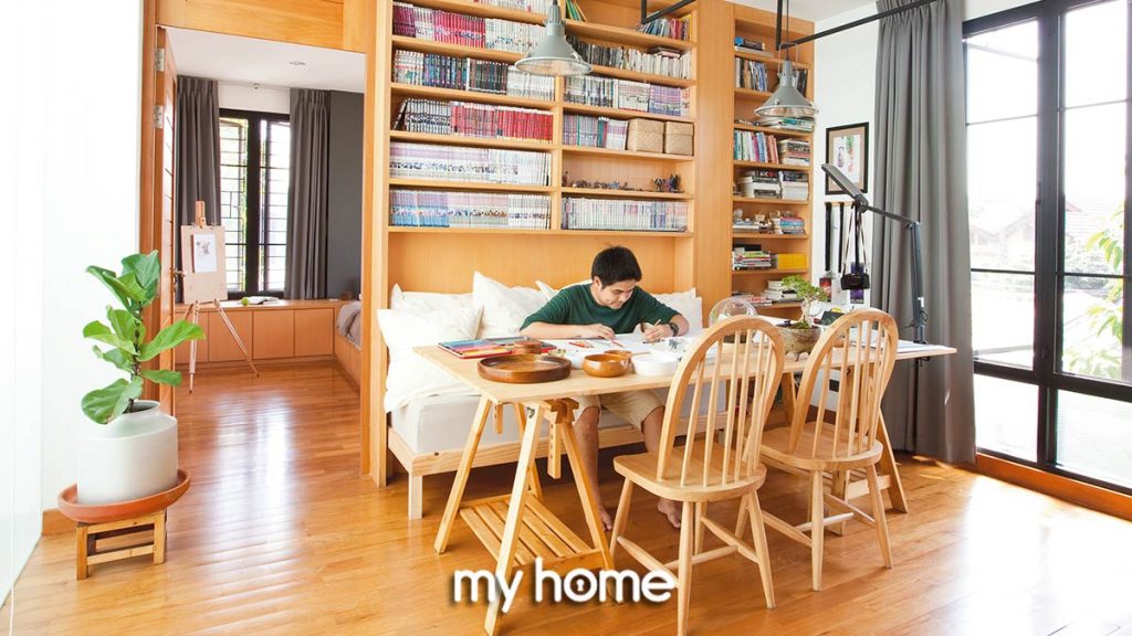 เมื่อบ้านที่อยู่มาเนิ่นนานเริ่มไม่ตอบโจทย์การใช้งานที่เปลี่ยนแปลงไป การ รีโนเวตบ้านเก่า จึงเป็นอีกแนวทางที่จะทำให้บ้านกลับมามีชีวิตและน่าอยู่อีกครั้ง เช่นกันกับบ้านหลังนี้ที่สร้างมาแล้วร่วม 25 ปีบนที่ดินดั้งเดิมของครอบครัวที่อยู่กันมาตั้งแต่รุ่นคุณตาของเจ้าของบ้าน คุณชัชวาลย์-คุณวัชรินทร์ ปัทมานุช เจ้าของบ้านเล่าว่าเดิมทีบ้านหลังนี้อยู่กันเป็นครอบครัวใหญ่ เมื่อลูกๆ เรียนจบจึงแยกย้ายออกจากบ้านไปทำงานที่อื่นๆ แต่ก็กลับมาเยี่ยมคุณพ่อคุณแม่อยู่เสมอ เมื่อ คุณกิฟท์-ชัชวลี ปัทมานุช ลูกสาวคะยั้นคะยอให้ รีโนเวตบ้านเก่า เพื่อปรับปรุงบ้านใหม่ ประกอบกับลูกชายเพิ่งสร้างบ้านที่อยู่ข้างกันเสร็จพอดีจึงได้จังหวะย้ายไปอยู่บ้านหลังนั้นชั่วคราวระหว่างปรับปรุงบ้าน “กิฟท์จะมาที่นี่ทุกสัปดาห์ พอกิฟท์รีโนเวตที่บ้านเขาเองเสร็จแล้วเขาก็บอกว่าบ้านเราก็ควรจะรีโนเวตนะเพราะ 20 กว่าปีแล้ว ทีแรกแม่แอนตี้มากเพราะเรามีอายุแล้ว ไม่อยากเปลี่ยนแปลงอะไร อยากอยู่เหมือนเดิม แต่พอบ้านลูกชายเสร็จพอดีกิฟท์เลยได้โอกาสให้แม่กับพ่อย้ายไปอยู่บ้านลูกชายก่อน เดี๋ยวเขาจะดูแลจัดการให้ อีกอย่างคือพอบ้านกิฟท์รีโนเวตเสร็จแล้วแม่ชอบมาก น่าอยู่มากกว่าเดิมแม่เลยให้ลูกจัดการเลย” คุณคุณวัชรินทร์ เล่าถึงที่มาก่อนปรับปรุงบ้านหลังนี้ เพราะคุณกิฟท์มีประสบการณ์รีโนเวตบ้านของตัวเองมาก่อนกับมัณฑนากรและสถาปนิกคู่ใจ คุณเล็ก-นภาภรณ์และคุณอ๊อน-วิชัย โพธิรัชต์จึงทำงานด้วยกันอย่างเข้าใจ ใช้เวลาปรับปรุงบ้านทั้งหมด ประมาณ 7 เดือน โดยปรับเปลี่ยนผังภายในและช่องเปิดต่างๆ จากเดิมที่เคยดูทึบให้โปร่งโล่งอยู่สบายมากขึ้น เปลี่ยนสีสันภายในบ้านใหม่ให้สดใส และเก็บเฟอร์นิเจอร์เดิมที่เป็นความทรงจำของคุณพ่อคุณแม่ไว้เกือบทั้งหมด คุณเล็กและคุณอ๊อนอธิบายรายละเอียดการปรับปรุงบ้านครั้งนี้ว่า รีโนเวตบ้านเก่า “ บ้านหลังนี้เดิมไม่ได้ทรุดโทรม แต่จัดวางฟังก์ชันไม่เหมาะกับการใช้งานปัจจุบัน ผังบ้านเดิมมีซอกหลืบใช้งานยาก อีกอย่างโรงรถเดิมอยู่ตรงครัวแล้วพอเข้ามาก็เจอกับของเยอะ เราจึงย้ายตำแหน่งที่จอดรถใหม่ให้สามารถเดินเข้าบ้านได้จากประตูด้านหน้าและด้านหลังและเพิ่มทางลาดให้สามารถใช้งานรถเข็นสำหรับผู้สูงอายุด้วยในอนาคต ย้ายส่วนซักรีดและห้องแม่บ้านให้อยู่ด้านนอก ส่วนตำแหน่งครัวยังคงไว้ที่เดิมแต่รื้อฝ้าออกทำให้ครัวดูโปร่งขึ้น” “ตรงส่วนชั้นล่างทำห้องคุณพ่อใหม่และเพิ่มห้องเก็บของเข้าไปด้วย […]