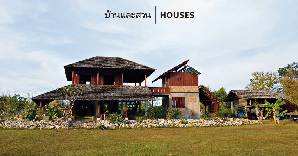 บ้านพื้นถิ่นไทย บ้านไม้ ที่ออกแบบมาให้มีช่องเปิดรับแสงในทิศทางที่เหมาะสม มีช่องทางไหลเวียนของลมเพื่อระบายความร้อน ชายคายื่นยาวกันแดดกันฝน และเพิ่มมุมมองที่อบอุ่นนุ่มนวลด้วยงานไม้เก่า