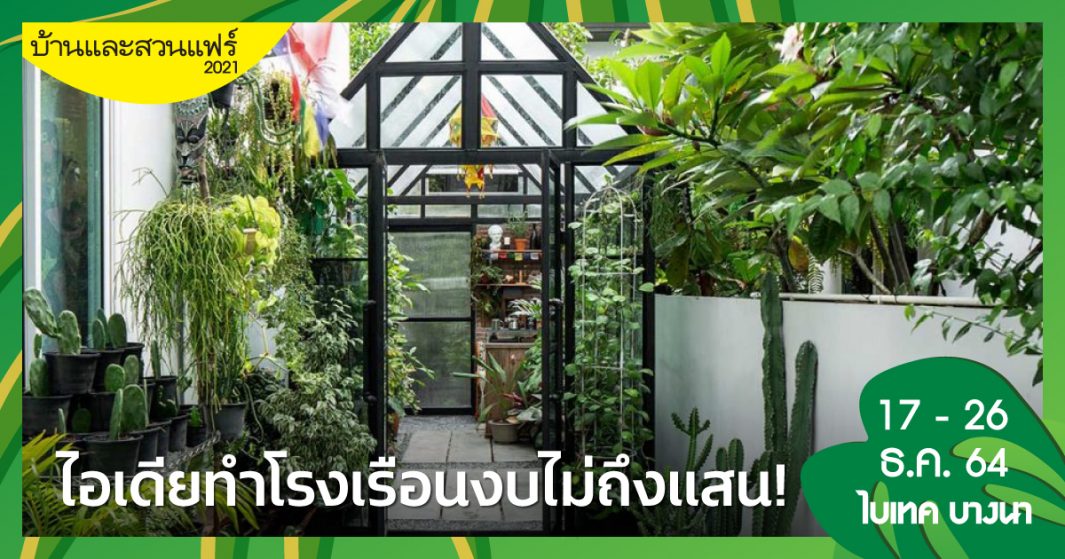 สำหรับใครที่เริ่มต้นสะสมไม้ใบคงกำลังมองหาแบบหรือวิธีการทำโรงเรือนสะสมต้นไม้ในราคาประหยัด ในโซน Green Village งานบ้านและสวนแฟร์ 2021 วันที่ 17 – 26 ธันวาคม 2564 ที่ศูนย์นิทรรศการและการประชุมไบเทค บางนา เรามีแบบตัวอย่างงบที่จำกัดไม่ถึง 1 แสนบาทมาให้ชม เช่นเดียวกับโรงเรือนแห่งนี้ที่เจ้าของโรงเรือนได้ลงมือทำเองในทุกๆ ขั้นตอน โรงเรือนข้างบ้าน คุณโม วนาลีและคุณฮิม หิมาลัย ปาลกะวงศ์ ณ อยุธยา สองสามีภรรยาเจ้าของ โรงเรือนข้างบ้าน ขนาดเล็กหลังนี้เล่าให้เราฟังว่าตั้งใจจะสร้างโรงเรือนข้างบ้านไว้ตั้งแต่แรกซื้อบ้าน ด้วยไลฟ์สไตล์ส่วนตัวที่ชอบปลูกต้นไม้เป็นทุนเดิมแต่จริงจังมากขึ้นในช่วง Lock Down จนขยายเป็นธุระกิจเล็กๆ จำหน่าย “แจกันมงคลชำต้นไม้ในน้ำ” ซึ่งต้องมีพื้นที่จัดเก็บสินค้า และที่สำคัญคือน้องฮิลและน้องเลห์ ลูกๆ ตัวป่วนของทั้งคู่ที่ชอบเล่นกับต้นไม้ที่ปลูกในบ้านที่อาจจะเรียกได้ว่าเป็นศัตรูพืชตัวแสบ ทั้งคู่จึงเริ่มสร้างพื้นที่ให้ต้นไม้ได้อยู่เป็นหลักแหล่ง เป็นโรงเรือนกลาสเฮ้าส์ขนาดเล็กข้างบ้านจัดสรร โดยใช้พื้นที่ส่วนนี้เป็นห้องทำงานได้ด้วยและวางแผนขยายเป็นคาเฟ่ขนาดเล็กในชื่อ LSD CAFÉ โจทย์ในการสร้าง โรงเรือนข้างบ้าน มีงบประมาณเป็นข้อจำกัด คุณโมและคุณฮิมเลือกช่างผู้รับเหมาอยู่หลายเจ้าเพื่อให้ราคาที่ไม่เกินกำหนดไว้แต่ก็ไม่สำเร็จ นั่นจึงเป็นเหตุผลให้คุณฮิมต้องลงมือสร้างโรงเรือนแห่งนี้ด้วยตัวเองโดยมีช่างที่รู้จักเป็นคู่หู ทุกขั้นตอนตั้งแต่ออกแบบโรงเรือน เลือกซื้อขนย้ายวัสดุ ปรับหน้าดิน ทำโครงสร้างเหล็ก ติดตั้งแผ่นกระจก ปูพื้น […]