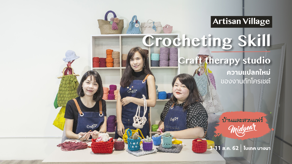 พบกับงานถักโครเชต์ Craft Therapy Studio ในโซน Artisan Village ในงานบ้านและสวนแฟร์ midyear 2019/2562 ที่กำลังจะจัดขึ้น 3-11 สิงหาคมนี้ ที่ไบเทค บางนา