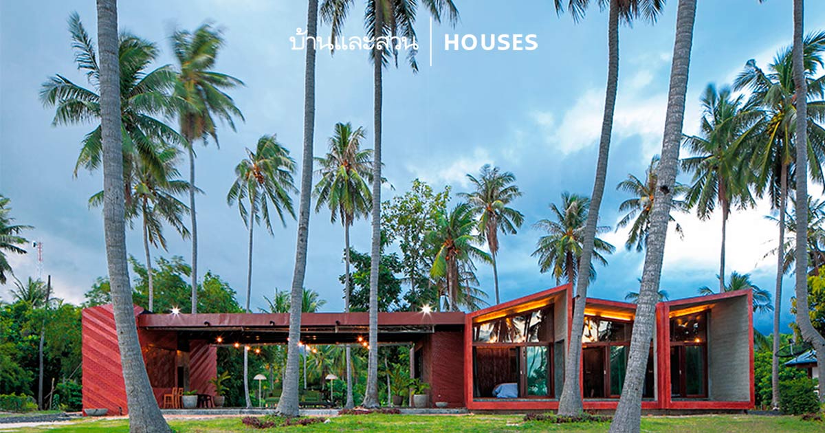 "บ้านสมใจ" บ้านอิฐ รูปทรงเรียบง่ายทันสมัยซึ่งแทรกตัวตามแนวต้นมะพร้าว ทว่าโดดเด่นด้วยสีน้ำตาลแดงของอิฐโชว์แนว สุดเท่ บนเกาะพะงัน จังหวัดสุราษฎร์ธานี