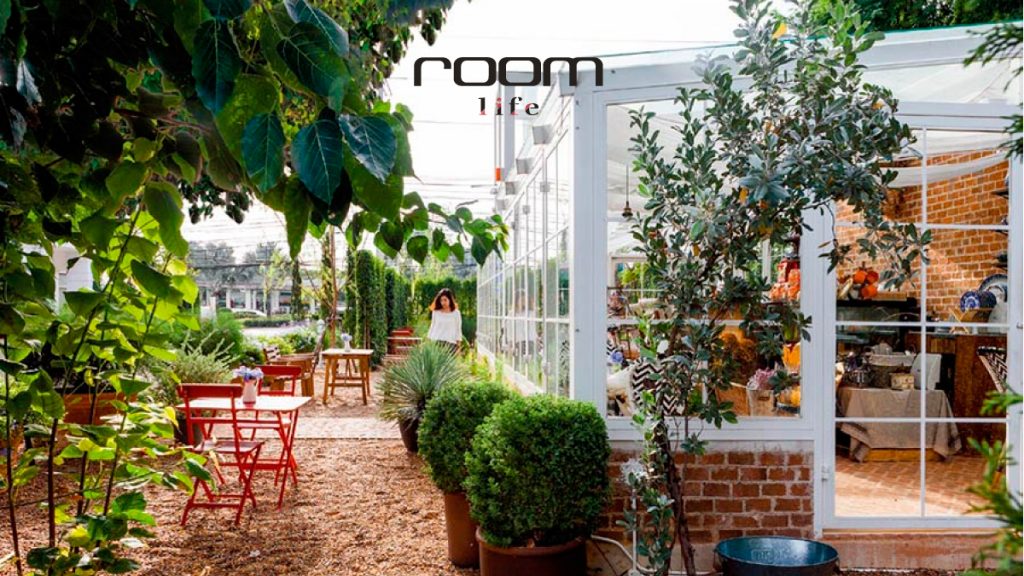 ร้านกาแฟเรือนกระจก ของ วีที แหนมเนือง สาขาพัทยา ภายใต้บรรยากาศสวนแบบฟอร์มัล และปลูกพรรณไม้ผสมผสานกันดูเป็นธรรมชาติตามสไตล์สวนอังกฤษ