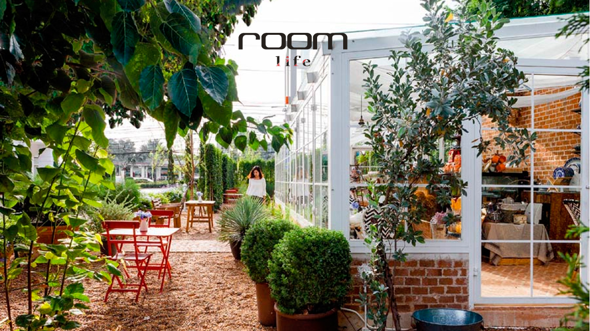 ร้านกาแฟเรือนกระจก ของ วีที แหนมเนือง สาขาพัทยา ภายใต้บรรยากาศสวนแบบฟอร์มัล และปลูกพรรณไม้ผสมผสานกันดูเป็นธรรมชาติตามสไตล์สวนอังกฤษ