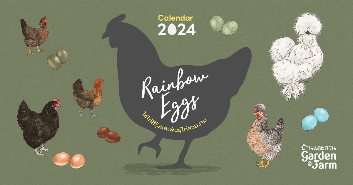 ชมความสดใสน่ารักของ ปฏิทิน2567/2024 คอนเซ็ปต์ไข่ไก่สีรุ้งและพันธุ์ไก่สวยงาม Rainbow Eggs ปฏิทินบ้านและสวนGarden&Farm