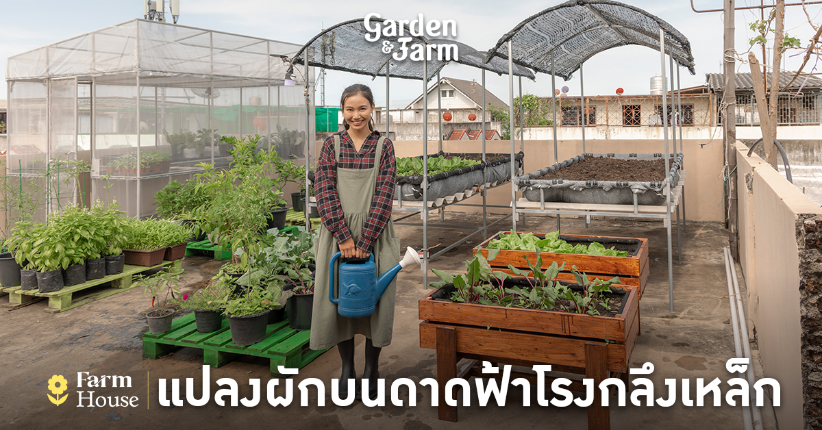 “อยู่บ้านฟาร์ม” สวนผักที่มี แปลงผักบนดาดฟ้า บนโรงกลึงเหล็กอาคารพานิชย์อายุกว่า 30 ปี ท่ามกลางบริบทที่แวดล้อมด้วยอุตสากรรมโรงกลึง