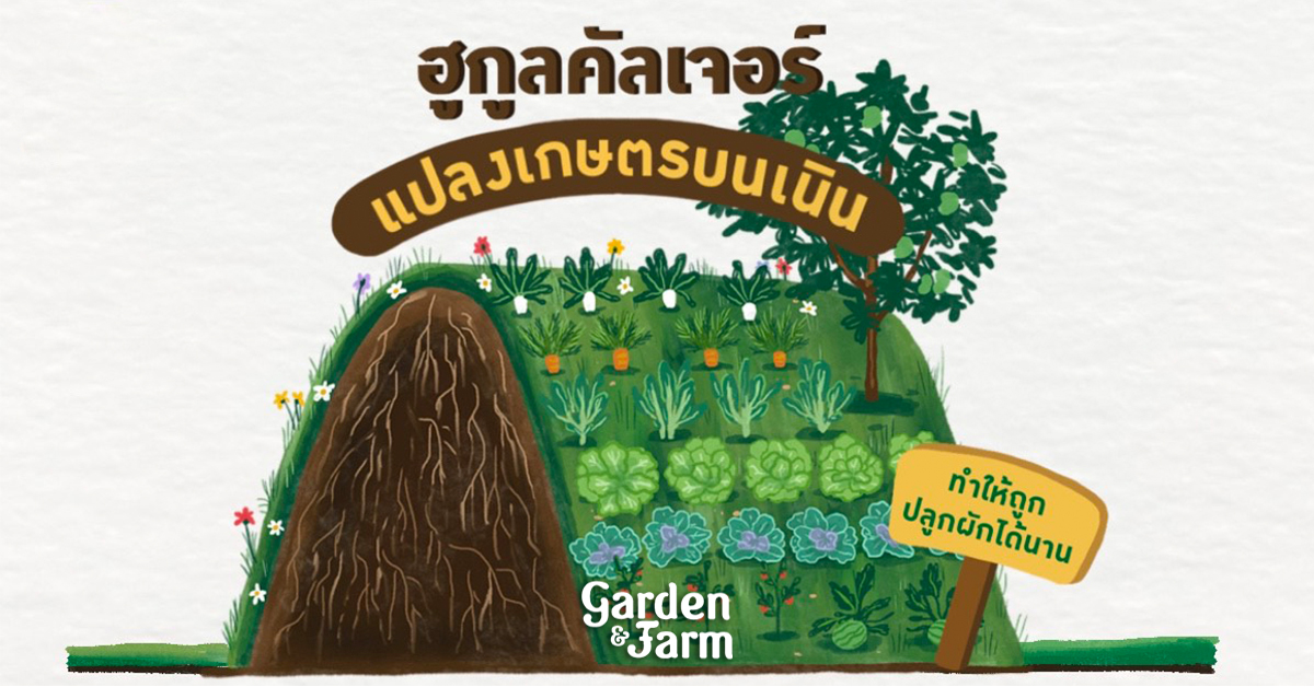 ฮูกูลคัลเจอร์ หรือ เกษตรเนินดิน นำท่อนไม้ขนาดใหญ่ กิ่งไม้ มากองเป็นเนินสูงทับด้วยใบไม้ใบหญ้า มูลสัตว์ และเศษอินทรีย์อื่นๆ กองสุมให้เป็นชั้นๆ