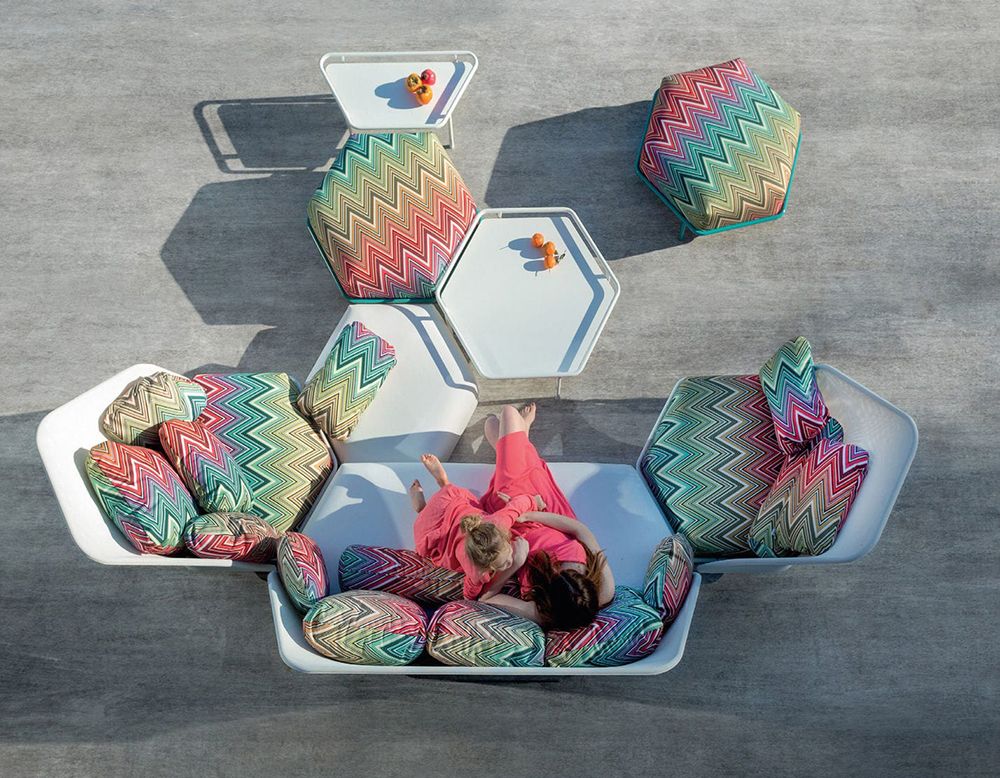 ชุดโต๊ะ-โซฟาโมดูลาร์สำหรับนั่งเล่นเอ๊าต์ดอร์รูปทรงหกเหลี่ยมสุดครีเอต รุ่น Hive Em 14 จากแบรนด์ EGO PARIS
