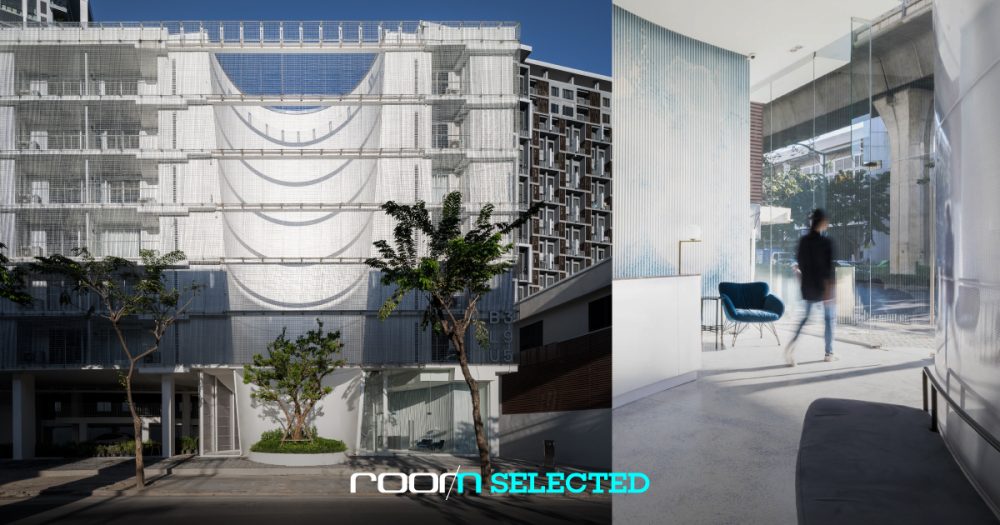 อาคารสีขาวที่ถูกคว้านเป็นทรงกรวยแปลกตาทั้งยังห่อหุ้มไว้ด้วยเหล็กตะแกรงนี้ตั้งอยู่ในย่านสะพานควาย ย่านที่พลุกพล่านที่สุดย่านหนึ่งของกรุงเทพฯ เพื่อสร้างให้เกิดภาพจำเชิงสัญญะแก่ผู้สัญจร และเพื่อให้อาคารแห่งนี้เป็นอีกหนึ่งพื้นที่ที่จะสร้างพลังงานที่ดีคืนแก่บริบทของย่านและเหล่าผู้คนที่ผ่านไปมาริมถนน การออกแบบความเชื่อมโยงระหว่างภายนอกและภายในจึงเป็นส่วนสำคัญ และผู้ที่เข้ามารับหน้าที่นี้ก็คือ PHTAA สตูดิโอออกแบบที่โดดเด่นในการตีความสร้างนิยามใหม่ๆให้กับงานทุกชิ้นที่ได้ผ่านมือพวกเขา BLU395 เป็นอาคารแบบ Mixed Used ที่มีห้องพัก 84 ห้อง และร้านค้า 3 ร้านผสมเข้าด้วยกัน อาจกล่าวได้ว่าอาคารหลังนี้มีจริตแบบ Modernism อยู่ในตัว ด้วยการแสดงออกอย่างชัดเจนจากภายนอกถึงลักษณะของโครงสร้างและพื้นที่การใช้งาน จากภายนอก ผู้สัญจรจะสามารถมองเห็นตะแกรงเหล็กที่นำมาใช้เป็น Facade ได้อย่างเด่นชัด ทั้งเป็นองค์ประกอบที่สร้างขึ้นเพื่อกำหนดขอบเขต แต่ก็โปร่งพอที่จะเห็นลักษณะของอาคารได้อย่างชัดเจน พื้นที่พิเศษเพื่อพักสายตาแล้วเดินต่อ ส่วนที่โดดเด่นที่สุดของอาคาร BLU395หลังนี้คงหนีไม่พ้น ต้นไม้ใหญ่ที่ตั้งอยู่กึ่งกลางของโถงบันไดซึ่งวางตัวเป็นทรงกรวยตั้ง ค่อยๆบานออกที่ชั้นบน โถงบันไดนี้มีการขึงผ้าใบสีขาวเรียบเกลี้ยงเอาไว้กั้นระหว่างความเป็นภายนอกและภายใน ทั้งทำหน้ากรองแสง กั้นความเป็นส่วนตัว และทำหน้าที่รับเงาของแสงที่ส่องผ่านโครงสร้างเปลือกอาคารลงมาเกิดเป็นเส้นโค้งที่ล้อไปกับรูปฟอร์มและตำแหน่งของไม้ใหญ่ ขับเน้นให้มุมมองสายตาที่ไล่เรียงจากชั้นพื้นที่ไม้ใหญ่นั้นเหมือนเป็นส่วนหนึ่งส่วนเดียวกับบาทวิถี ค่อยๆไล่เรียงขึ้นไปยังอาคาร และแหงนมองสู่ฟ้าในที่สุด พื้นที่นี้เป็นทั้งพื้นที่ที่ให้ความรู้สึกพิเศษ ทั้งสำหรับตัวผู้ใช้อาคารเอง และผู้ที่สัญจรผ่านไปมา ได้พักสายตาจากหมู่ตึกและการจราจรที่คับคั่งอีกด้วย แฝงกลิ่นอาย “ตึกแถวไทย” ด้วยรูปแบบการใช้อาคารหลังนี้อาจพาให้นึกไปถึง “ตึกแถวไทย” ได้แต่ทั้งหมดนั้นก็ได้ถูกตีความและสร้างสรรค์ขึ้นใหม่ในแบบ PHTAA โดยที่จากชั้นล่างซึ่งเปรียบได้กับพื้นที่หน้าตึกแถวที่มักมีสวนเล็กๆและพื้นที่หย่อนใจ ซึ่งมักเป็นพื้นที่แบบ Semi-Public ก่อนที่จะขึ้นสู่ชั้นบนด้วยโถงบันไดนำพาไปยังพื้นที่ส่วนตัวซึ่งเป็นห้องพักในที่สุด ประกอบกับพื้นที่เชิงพาณิชย์ที่ชั้นล่าง […]